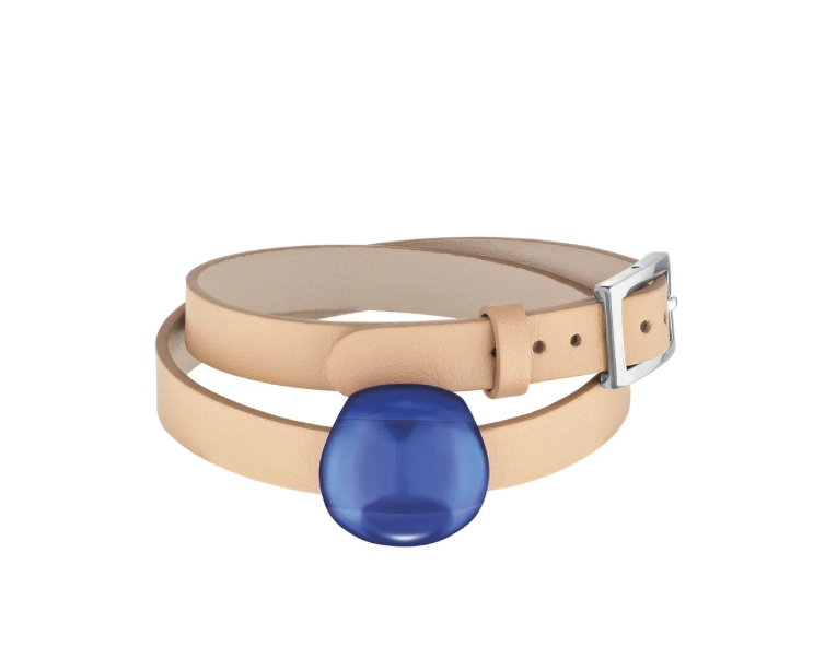 Cuir, argent Massif rhodié, cristal bleu cap ferrat : 230 €