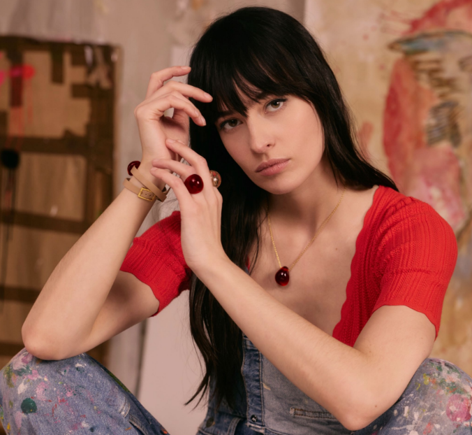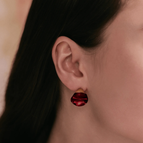 Plaqué or 18 carats, cristal rouge : 290 €