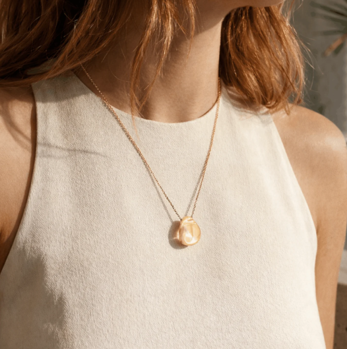 Plaqué or 18 carats, cristal nacré blanc